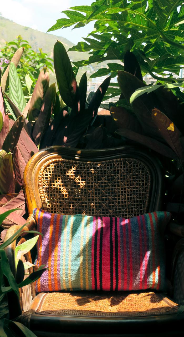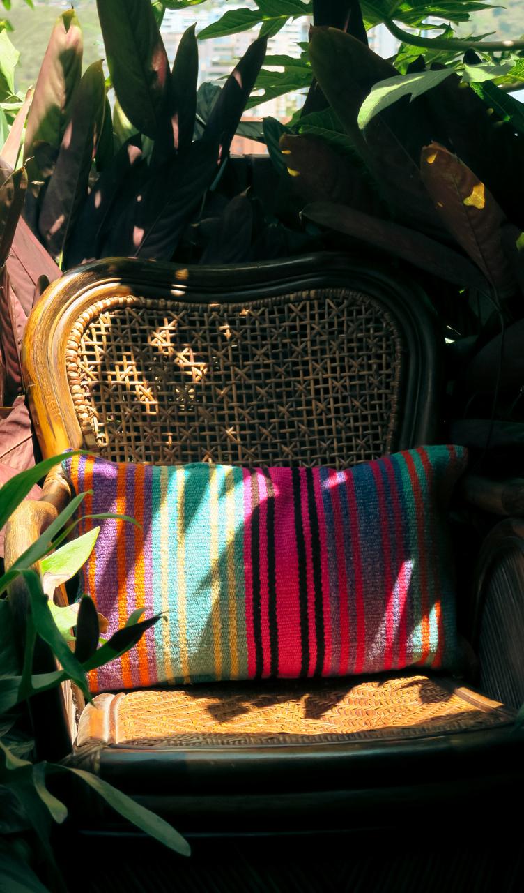Cojin hecho a mano que celebra el nacimiento, la raíz y el legado. Parte de la colección WACHAY, tejida en honor a los comienzos que marcan la vida.